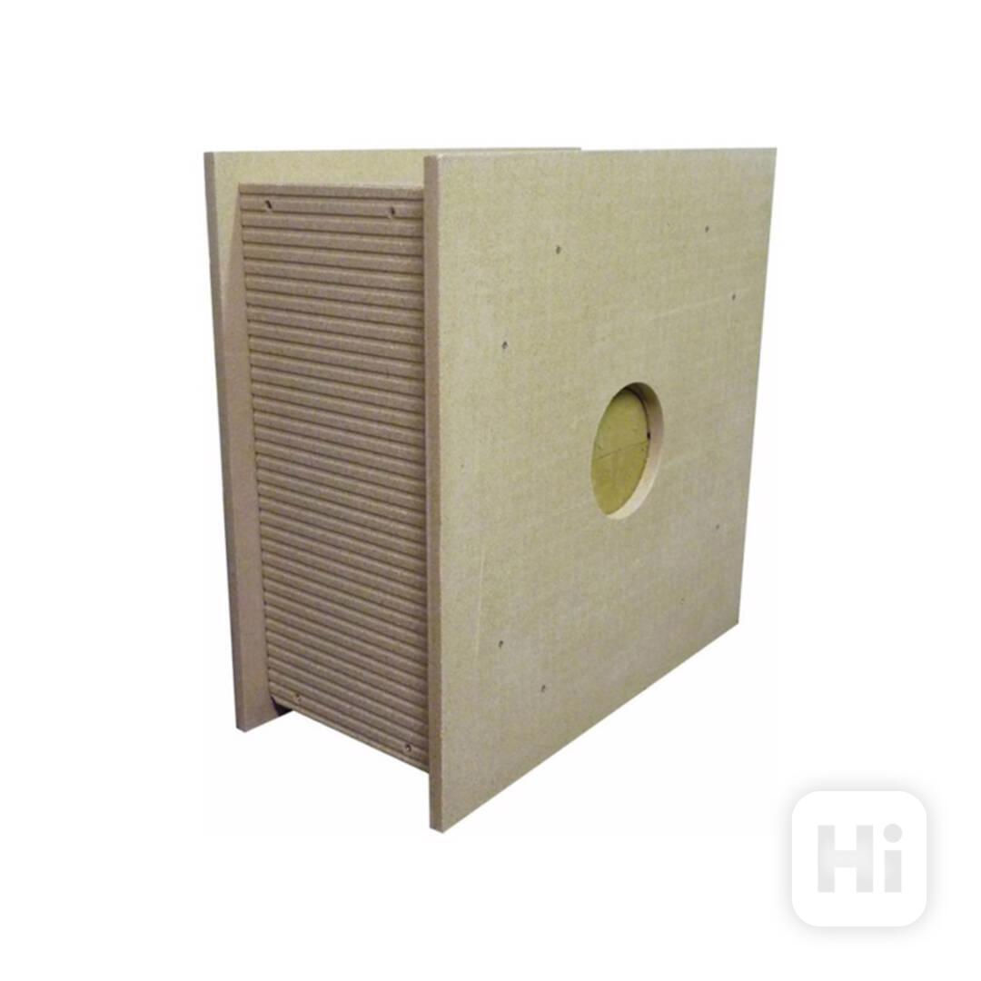 Bezpečný prostup kouřovodu pr. 120mm stěnou nebo příčkou. Univerzální konstrukce pro tloušťku stěny do 150mm.
