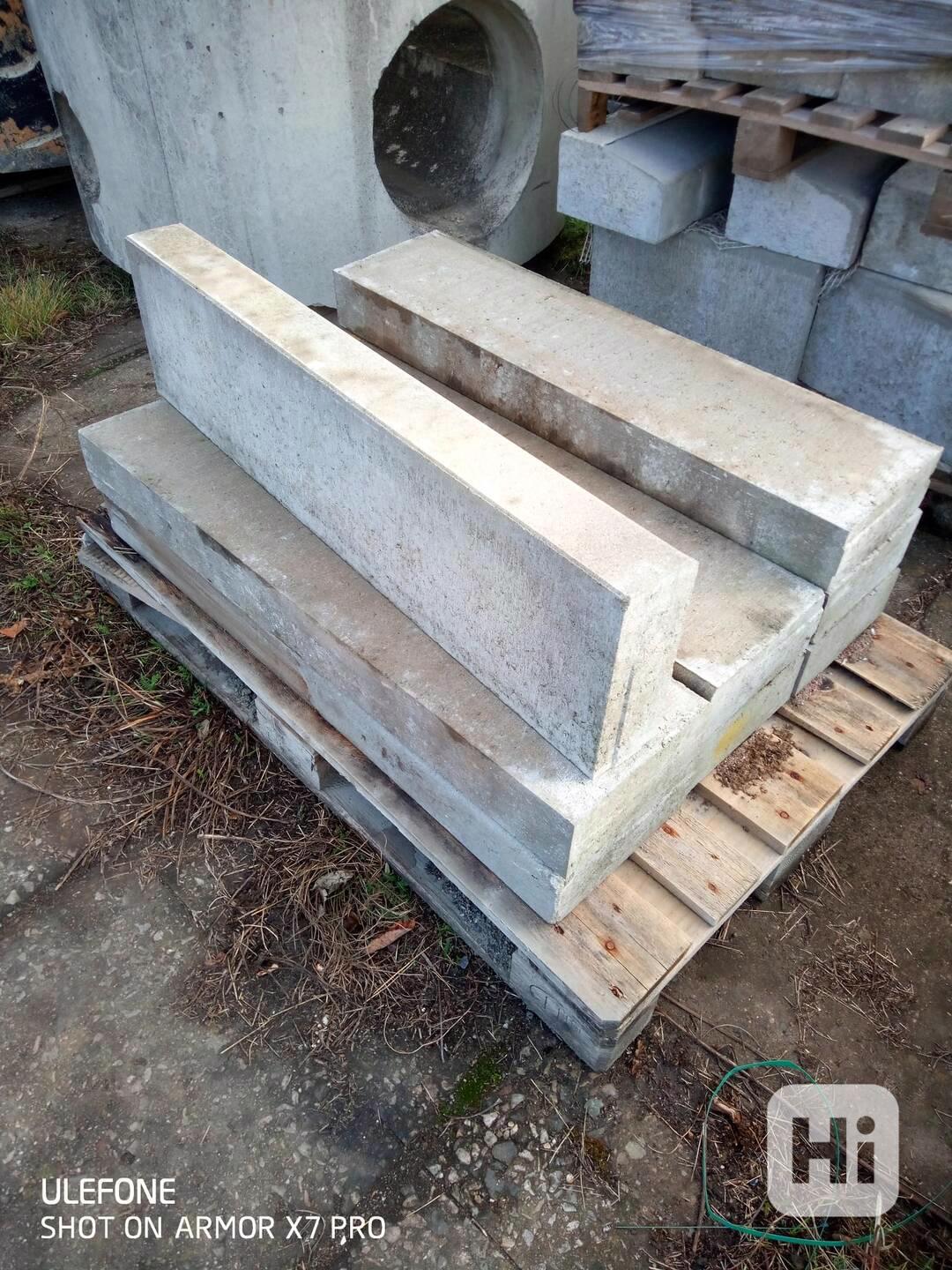Prodám betonové obrubníky - různé. Obrubník, rozměr 100 x 25 x 15 cm. Cena 110 Kč/ks. Obrubník - oblouk, rozměr 50 x 25 x 15 cm. Cena 200 Kč/ks. Skladem Kladno